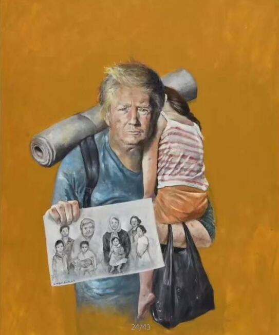在这一个系列中,川普的画像可谓是看起来最像难民的一个。