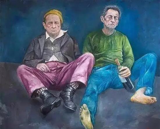 最不济的,要数两位法国前总统,奥朗德与萨科齐,手握酒瓶醉倒街头,与流浪汉无异。